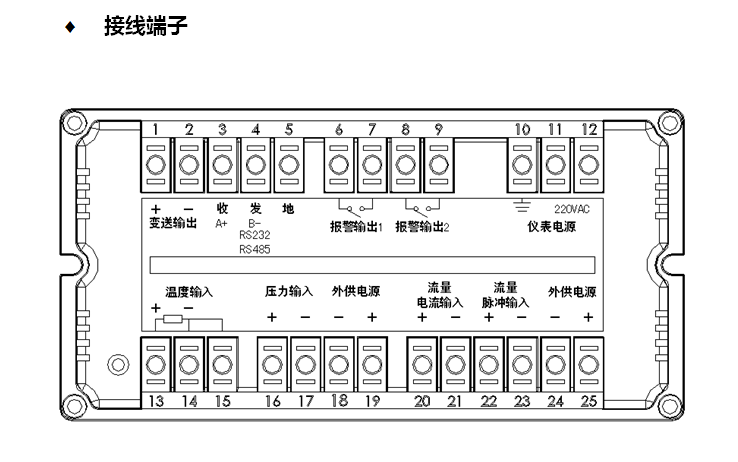 XSR流量補(bu)償積算記錄儀(yí)流量積算儀 外形尺寸及(jí)接線端子